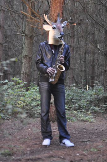 Milee The Sheep and Her Animal Orchestra, 2009 Video & Live performance, 7mins 43seconds The video piece was a live action undertaken in a remote woods near Newstead Abbey in Nottinghamshire. The 8 minute video shows a group of half humans, half cloned animals performing an abstract musical score around the trees from dawn to the dusk. The video piece was used as a backdrop in a live performance with the same group of people gathered together again at an auditorium space at The Collection in Lincoln, here the broken rhythms were played in front of a live public. The live performance started off with a monkey headed creature played piano with his ping-pong ball fingers, while Milee The Sheep struck a bass drum with a single light bulb in the dark, dragging long ghostly shadows of the animal creatures on the walls to form the similarity to shapes of the trees. Commissioned by Lincoln Art Programme, supported by Arts Council England and The Collection.