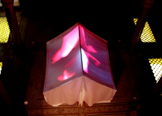 Tent, 2002 Video Installation, 270cm x 224cm x 210cm This piece is part installation, part video; Lee has created an immersive environment that questions notions of viewer’s interactivity within art works. Visitors are invited to enter in her tent and watch images of Lee’s Body Landscapes. Birmingham Institute of Art and Design. Touring to Intertidal Zone art Monitoring Station-Annual Project 2005 and Best of 2005, Taishin Prize, Taishin Arts Centre, Taipei, Taiwan